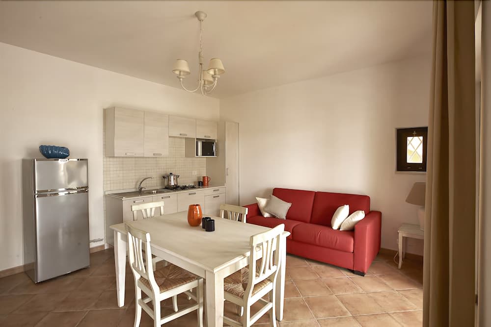 Immerse in un suggestivo scenario naturale, sono state realizzate per regalare il massimo comfort, luminose, accoglienti ed elegantemente arredate, tutte con servizi privati, aria condizionata, TV e cassetta di sicurezza, telefono o collegamento citofonico, patio o terrazzo esterno arredato. La Camera Standard può essere assegnata, in base alla disponibilità e occupazione, in una delle seguenti tipologie: camere doppie, triple o quadruple (3° e 4° letto in divano letto), ubicate nelle aree adiacenti l’area servizi o nel corpo centrale (disponibili camere comunicanti); o anche in appartamenti bilocali e trilocali, che si trovano a circa 150-250 metri dall’hotel, ideali per le famiglie più numerose e per chi ama maggiore abitabilità e riservatezza (disponibili bilocali con camera matrimoniale e divano letto in area living o trilocali con una camera doppia aggiuntiva). Suite: si tratta di sistemazioni che prevedono assegnazione di camere con ambienti separati, dotate di aria condizionata, TV e cassetta di sicurezza, minibar (riempibile su richiesta e con consumazioni da pagare in loco), bagno con vasca o doccia e asciugacapelli; ovvero degli Appartamenti del Porto, ognuno caratterizzato da arredi e colori differenti, con spettacolare vista sul porto: i bilocali dispongono di area living e cucina attrezzata, camera matrimoniale, bagno con doccia e terrazzo arredato; i trilocali dispongono di ulteriore camera con due letti separati, e possono ospitare fino a 6 persone.